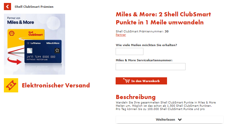 Shell ClubSmart Punkte in Miles & More Prämienmeilen umwandeln: