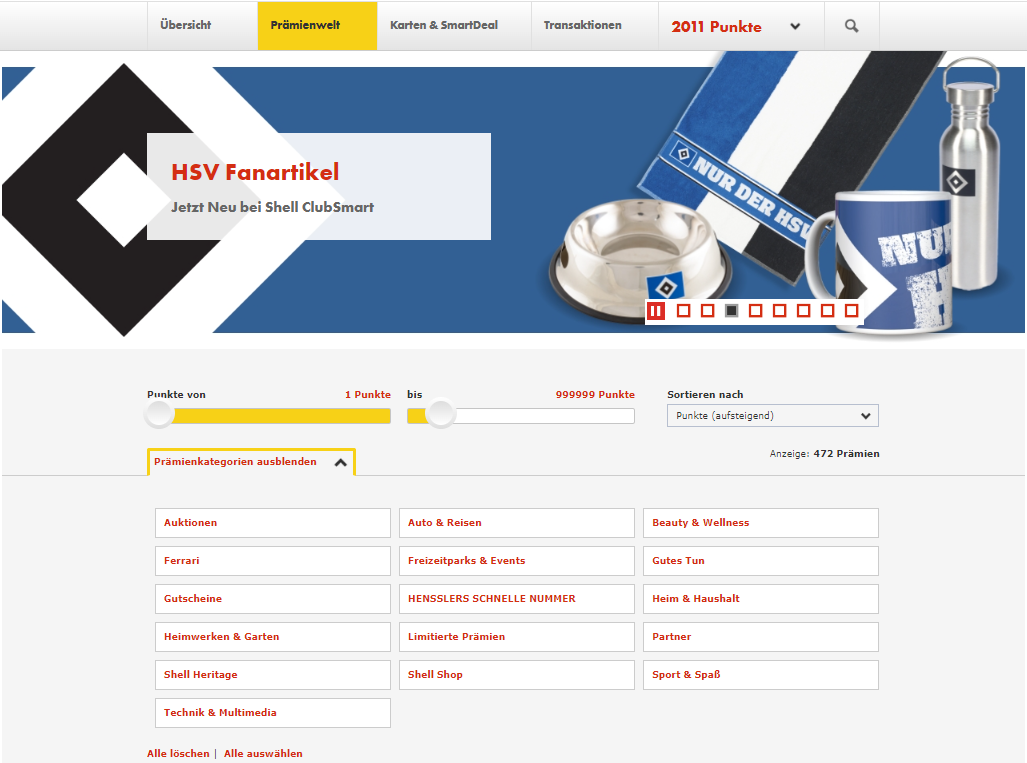 Wählen Sie die gewünschte Shell ClubSmart Sachprämie aus einer der Kategorien